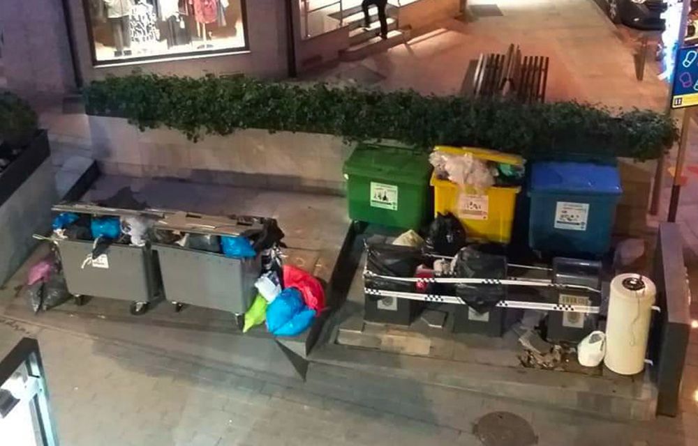 De fet, els contenidors soterrats que hi ha a la plaça estan precintats pel servei de circulació comunal i rere seu s’hi han posat dipòsits d’escombraries de plàstic, amb els colors tradicionals (verd, groc, blau…). Les lloses de la voravia on es van col·locar els equipaments ara suposadament inutilitzats estan la majoria fora de lloc, incrementant encara més la sensació d’abandonament d’una plaça que, com recorden els veïns, és molt transitada.