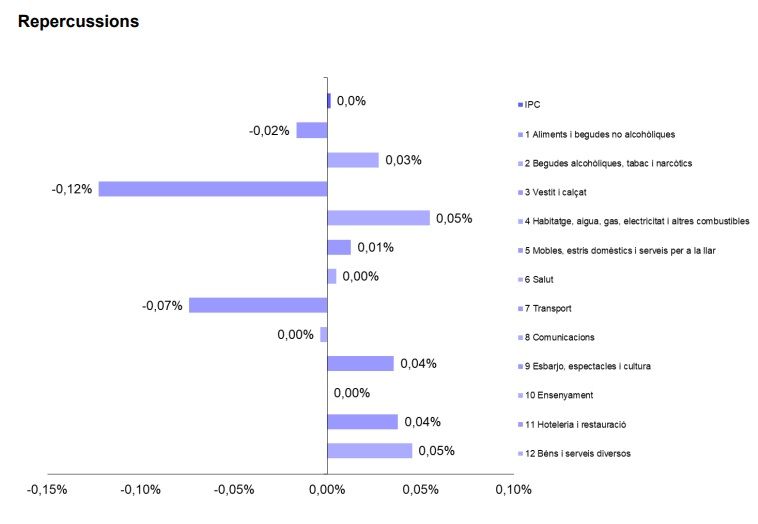 Feia tres anys que l’indicador no es trobava tan baix i s’ha vist com el mes d’agost no ha estat gens inflacionista. El transport ha estat un dels sectors que ha patit una davallada de dos punys i dues dècimes, situant-se al +0,4%, causa de la disminució del preu dels carburants. Precisament, la disminució del preu dels combustibles líquids també ha ajudat a moderar el grup d’habitatge, aigua, electricitat i gas.