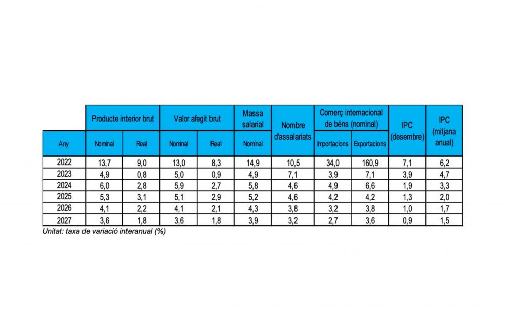 Les projeccions econòmiques són molt conservadores quan a l’evolució dels preus, del cost de la vida. I si el 2022 va deixar un IPC del 7,1%, per aquest exercici en curs l’estimació de la inflació el situa Estadística en un 3,9%. Segons les dades publicades pel departament governamental, l’increment del cost de la vida seria cada vegada inferior. És a dir, l’IPC aniria reculant sent, però, sempre positiu. Això sí, des del 2024 i fins al 2027, sempre que les estimacions es compleixin, sempre per sota del 2%.