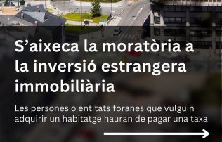 S’aixeca la moratòria a la inversió estrangera immobiliària. 👉 Les persones o entitats foranes que vulguin adquirir un habitatge hauran de pagar una taxa.