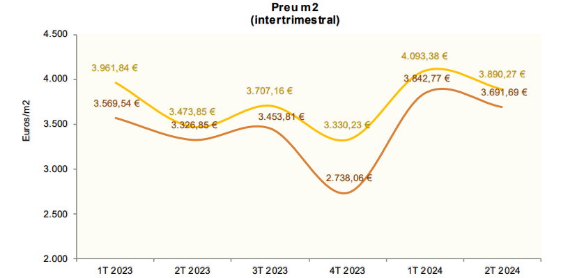 Així ho posen de manifest les dades fetes públiques pel departament d’Estadística. Si ens fixem en les dades dels darrers tres mesos, el preu mitjà del metre quadrat s’ha encarit un 12%. Ara bé, el valor dels béns tramesos ha estat de 209,8 milions d’euros (-21,6%), és a dir, un descens 57,8 milions que el mateix període del 2023.