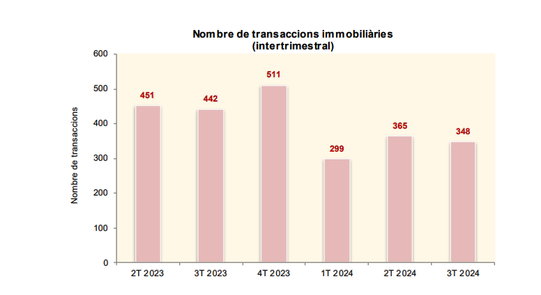 Durant aquest període s’han realitzat 348 transaccions immobiliàries, un 21,3% menys que fa un any, el que representa una caiguda de 94 operacions. Una de les explicacions pot ser que, malgrat que al febrer es va aixecar la moratòria per als inversors estrangers, hi ha operacions que potser han trigat més a poder-se concretar i també s’ha de veure si l’impost que grava les operacions als compradors forans té o no el seu efecte.