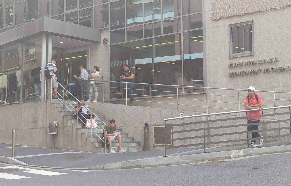 Les cues per tal de fer els tràmits a immigració són de més d’una hora. Molts d’ells esperen a la porta. Altres al davant, per tenir ombra. La majoria són temporers que porten la documentació o que acudeixen per recollir el permís, que ja tenen tramitat. Ho fan amb contractes de màxim quatre mesos, el que dura la feina d’estiu. També gran part d’ells renoven estança. Ja han treballat a Andorra a l’hivern i, amb la possibilitat d’enllaçar amb l’estiu, han decidit quedar-se. De fet, pràcticament tots amb qui ha pogut parlar l’Altaveu, enllacen una feina amb una altra, amb el mes de maig en blan entremig.