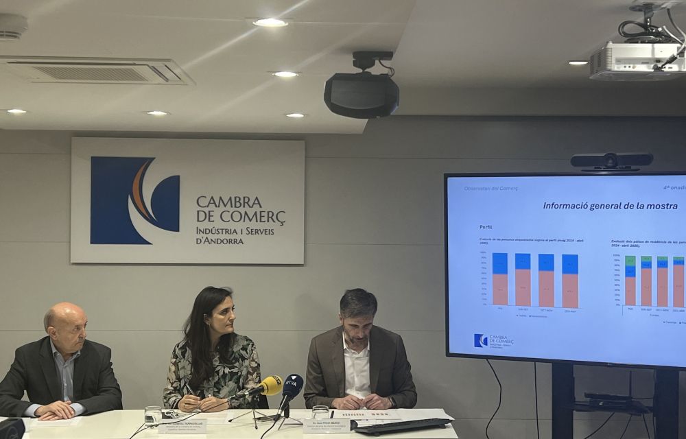 Aquesta és una de les anàlisis que es poden fer de la quarta onada de l’Observatori del Comerç impulsat per la Cambra i l’Andorra Recerca i Innovació (AR+I). L’enquesta, elaborada entre més de 900 persones, s’ha anat fent als principals eixos comercials del país i reflecteix els moviments comercials de la temporada hivernal. En concret, l’onada de consultes ha anat de desembre a abril. Els resultats de l’enquesta, presentada pel president de l’ens cameral i la seva directora, Josep Maria Mas i Sol Rossell, respectivament, i el responsable del grup de sociologia de l’AR+I, Joan Micó, confirma la diferenciació del perfil de compra que hi ha entre els excursionistes, que venen essencialment a comprar, i els turistes, que vénen atrets per altres motius i que adquireixen una varietat de productes major que els visitants de dia però a raó d’una despesa diària una mica inferior, i que se situa al tomb dels 75 euros. A l’estiu, aquesta mateixa xifra, segons la mateixa enquesta, va arribar als 99 euros.