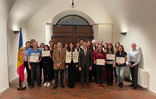 Bonell ha aprofitat el viatge a Praga per reconèixer un centenar d’alumnes que han cursat durant el primer semestre del 2023-2024 les formacions que ofereix el centre situat a la Universitat Carolina de la capital de la República Txeca. Concretament, el Centre ofereix quinze assignatures oficials sobre llengua i literatura catalana; i institucions, art i cultura d’Andorra. Acompanyada de Joan Sans, també ha fet entrega del diploma oficial de català als vint estudiants que es van examinar en darrera convocatòria.