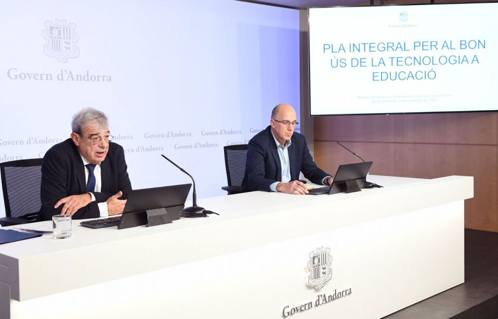 El ministeri va fer una aposta decidida per la introducció de la tecnologia a les aules del sistema educatiu andorrà i dins d’aquest procés d’avaluació i revisió que s’està fent, segons exposa el titular de la cartera, Ladislau baró, “arriba el moment de fer un salt qualitatiu més rellevant, però també agafar les regnes de com s’utilitzen les noves tecnologies a les aules”. Afegeix que “volem tenir elements per controlar aquesta omnipresència”.