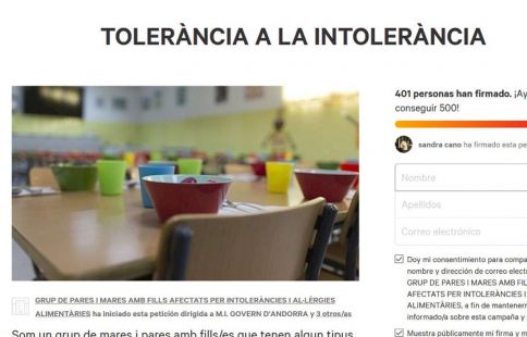 En la petició, remarquen que “no entenem com les cuines de l’escola del país no estan preparades per atendre aquests infants”, tot posant en relleu que cada cop hi ha més nens amb aquestes intoleràncies. Per això, “volem que tinguin un menú fet al mateix dia, amb la mateixa qualitat que la resta dels seus companys” així com “a un preu equitatiu”.