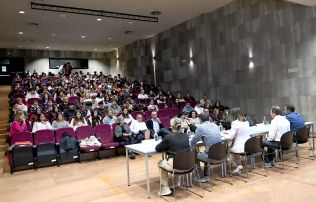 El conferenciant escollit per aquesta nova edició ha estat Salvador Macip. És catedràtic de medicina molecular al Departament de Biologia Molecular i Cel·lular de la Universitat de Leicester i director als Estudis de Ciències de la Salut de la Universitat Oberta de Catalunya. En la conferència ‘El futur dels humans’, que ha obert la jornada abans de la celebració dels tallers, Macip ha explicat als alumnes els diferents avenços que s’han viscut durant aquest segle a nivell científic i quines poden ser les conseqüències o problemes ètics que es poden plantejar a partir d’ara. “A partir del moment que vam poder llegir la informació genètica que contenen les nostres cèl·lules, es van obrir un munt de noves possibilitats, la més extrema de les quals és modificar els humans del futur”, ha exposat l’investigador.
