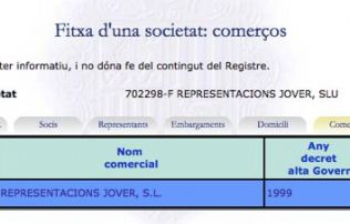 Representacions Jover SLU va ser inscrita al registre de societats el 22 de desembre del 1992 via la notaria de Marc Vila. Segons les dades que figuren al registre, té un capital social de 6.010,12 euros (és a dir, el milió de pessetes a l’època) repartides en mil participacions. És a dir, cada acció té un valor de poc més de sis euros. Mil ‘peles’. Es tracta d’una empresa de caràcter familiar que, sobretot, és coneguda per la comercialització, per la distribució de formatges. Representacions Jover SLU té un comerç, donat d’alta davant de Govern el 1999, que es diu igual que la societat mare. El comerç té el mateix objecte social. Exactament, venda al major i distribució de productes alimentaris envasats. Amb exclusió dels congelats, segons que especifica el registre de comerç.
