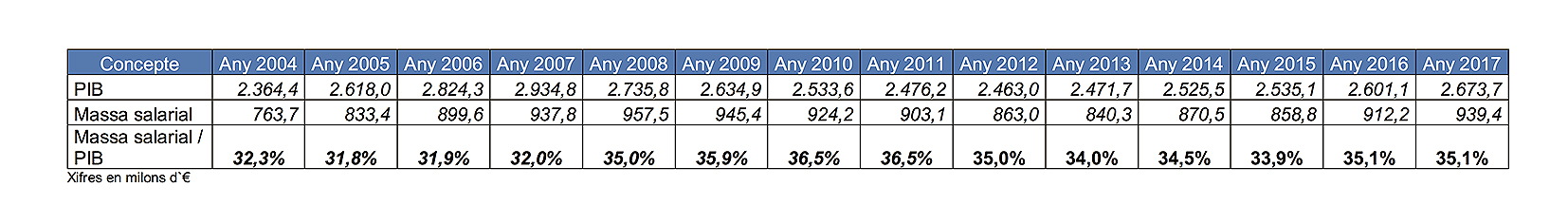 A més, remarquen els experts consultats, si el pes dels salaris és baix en relació amb el conjunt de l’economia del Principat (939 milions d’euros de massa salarial global en relació als 2.673 milions d’euros del PIB del 2017) comparat amb la resta d'Europa, encara resulta més cruel que la recaptació de l’impost de la renda de les persones físiques (IRPF) recaigui sobre les rendes del treball i no del capital, aprofundint encara més en el problema.
