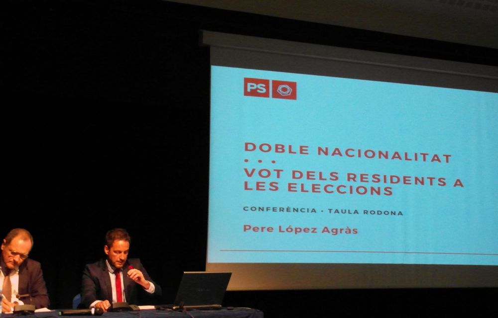 El PS ha organitzat aquest dilluns una taula rodona que tenia en els drets i deures dels immigrants, i especialment en la doble nacionalitat i la participació als comicis locals, el seu epicentre. Els protagonistes eren l’esmentat Pere López i el diputat socialista portuguès especialista en comunitats portugueses a l’exterior i moltes vegades present al Principat Paulo Pisco, que ha assegurat que tant nacionalitat com drets electorals són “qüestions de preocupació” per als lusitans residents a Andorra.