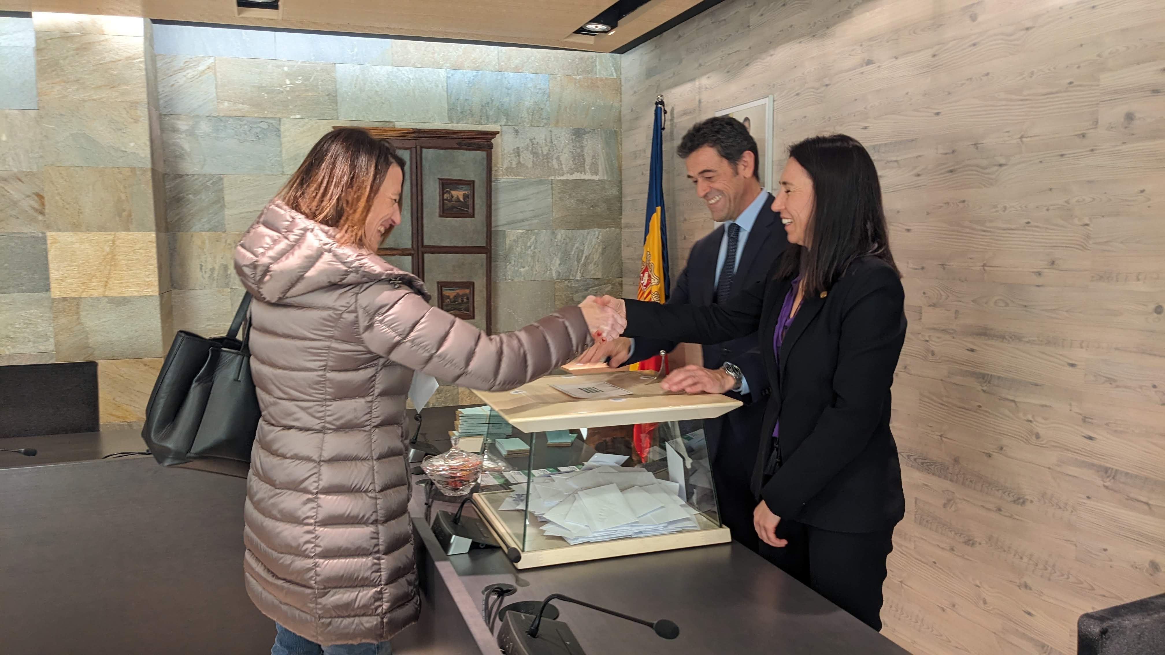 En el moment d’emetre el vot s’ha vist molt bona sintonia entre Dolsa, que ha estat a l’oposició aquests últims quatre anys, i els cònsols Josep Àngel Mortés i Eva Choy. Fins i tot Mortés li ha demanat si portava corbata en clara al·lusió a una de les discussions recurrents a les sessions de consell on és obligatori portar-la i Dolsa sempre s’hi ha negat. Rialles que, en canvi, no s’han repetit quan ha dipositat la papereta Maria del Mar Coma tot i haver estat a l’equip de la majoria aquest mandat.