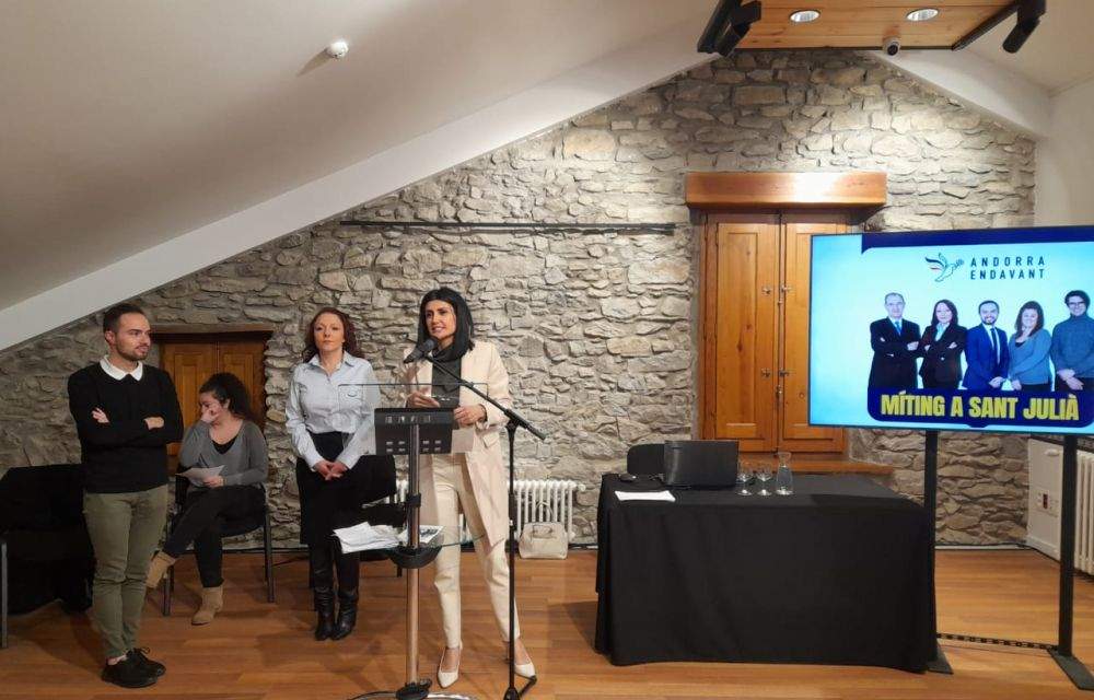 La reunió de poble ha començat amb la cap de llista nacional, Carine Montaner, presentant els candidats que confirmen la llista territorial d’Andorra Endavant a Sant Julià de Lòria, encapçalada per Bianca Martínez i Marc Ferreiro. Naturland, un dels atractius turístics de la parròquia també ha estat present en la reunió de poble. Malgrat ser una qüestió comunal, Marc Ferreiro ha posat sobre la taula la possibilitat que sigui un inversor estranger que s’encarregui de la gestió de l’ecoparc, això sí, mantenint la plantilla actual. Des del públic s’ha qüestionat que un privat vulgui invertir perdent diners, tenint en compte els comptes actuals i s’ha preguntat si seria viable mantenir tots els treballadors. Montaner ha exposat que “amb la gestió pública Naturland és un pou de despeses”. Considera que “si es donen els terrenys en concessió i amb una bona planificació recaptarem diners que revertiran en projectes per a la millora de la qualitat de la ciutadania”. Ha criticat al Govern per la deixadesa vers Sant Julià de Lòria perquè “hem passat a ser la parròquia oblidada, cal que es facin més esdeveniments a Sant Julià i més dinamització”.