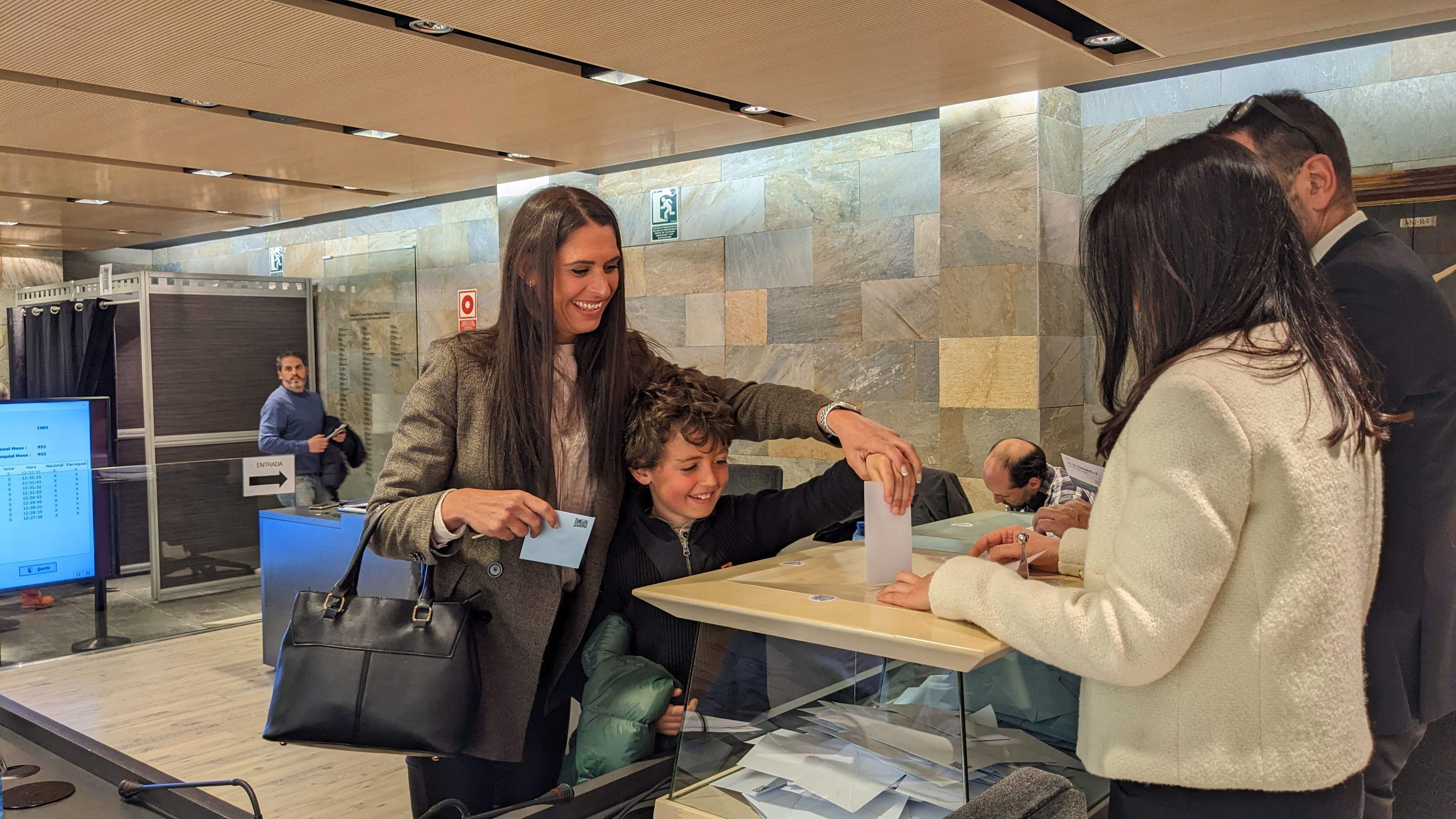 Noemí Amador votant amb el seu fill a Ordino