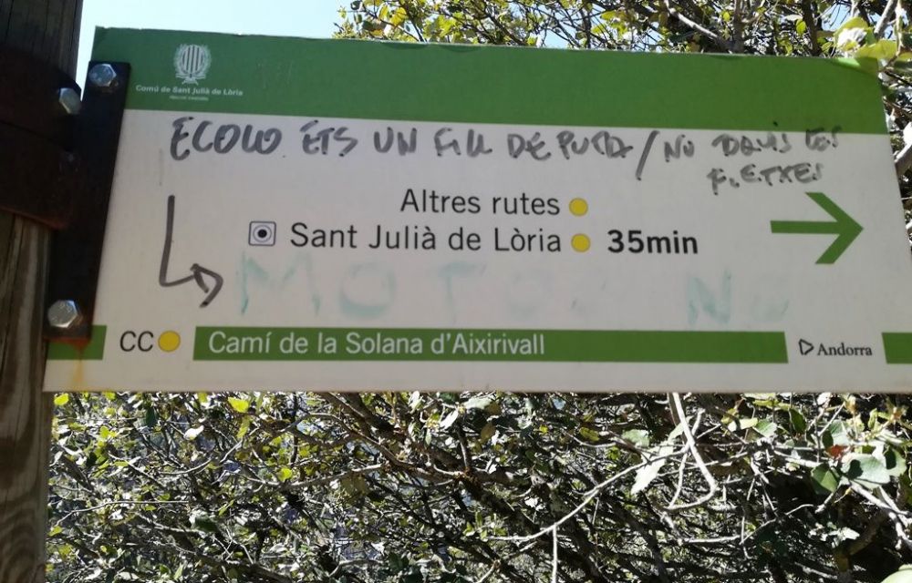 La disputa de proves de trial a Sant Julià de Lòria fa que sigui habitual el pas de les motos pels seus camins de muntanya, per la competició o per recórrer les zones que han fet els millors pilots com Toni Bou, campió del món. La proliferació de motos ha provocat l'aparició de pintades als camins i en els cartells, la qual cosa ha provocat la reacció dels amants de les motos.