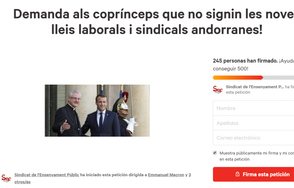 La petició que ha estat creada, aquest dijous al vespre, ja acumula més de 240 firmes i el sindicat espera poder arribar a les 500 per poder traslladar aquesta demanda als coprínceps. Entre els signants manifesten que és una "injustícia el què està passant a Andorra" i que "anem més enrere en lloc d'avançar".
