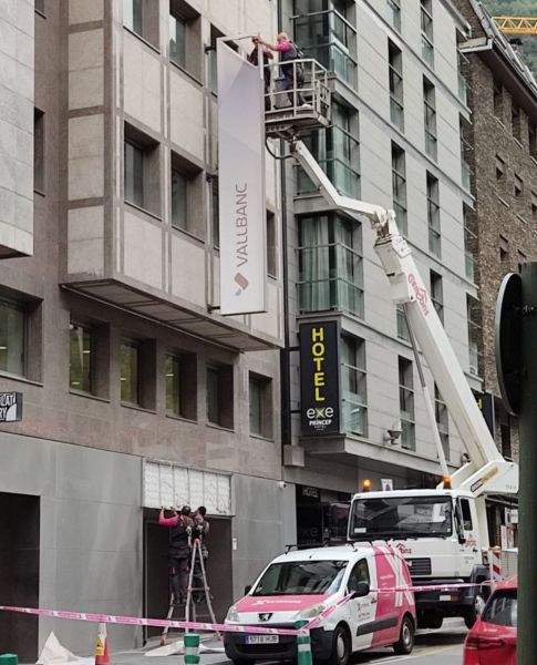 Els treballs de retirada de rètols i altres elements de senyalització els està duent a terme, per exemple en les dependències del carrer de la Unió d’Escaldes, on hi havia una oficina que ja fa dies que roman tancada, o plaça Rebés d’Andorra la Vella, a pocs metres d’una notable oficina de Crèdit Andorrà, una empresa espanyola dedicada al tractament d’edificis. També l’aparcament del que va ser la seu central de BPA amb accés pel carrer de Sant Antoni d’Escaldes ja llueix rètols de l’entitat absorbent.
