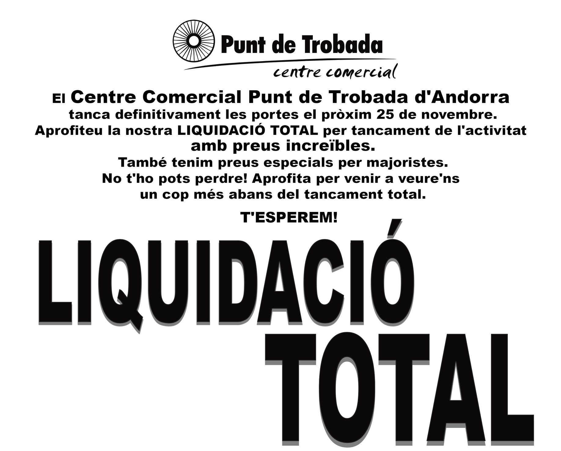 En l’anunci s’explica que “el centre comercial Punt de Trobada d’Andorra tanca definitivament les portes el pròxim 25 de novembre”. També s’insta a la gent -està especialment dirigit a turistes i visitants- a aprofitar “la nostra liquidació total” amb “preus increïbles”. També s’indica que hi ha “preus especials” per a majoristes.