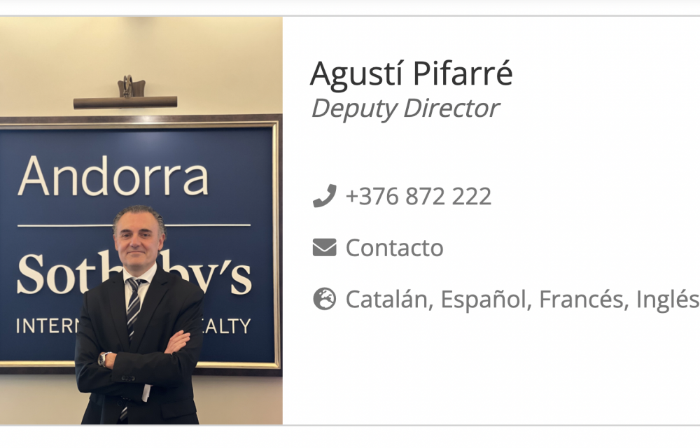 En efecte, Pifarré, titulat degudament, ha entrat com a director adjunt de l’empresa. Qui havia estat al seu dia coordinador de Polítiques de Joventut i Voluntariat al Govern o, més tard i durant poc temps, membre de l’equip humà de la Fundació Nostra Senyora de Meritxell abans d’enrolar-se en la promotora d’esdeveniments pròpia Studio Eventia, és ara sobre el paper el número 2 de Sotheby’s rere el controvertit empresari Narcís Socias.