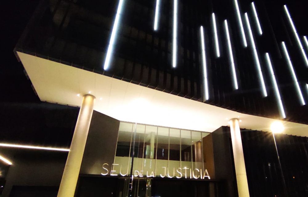 La Seu de la Justícia apaga la il·luminació exterior abans per estalviar energia