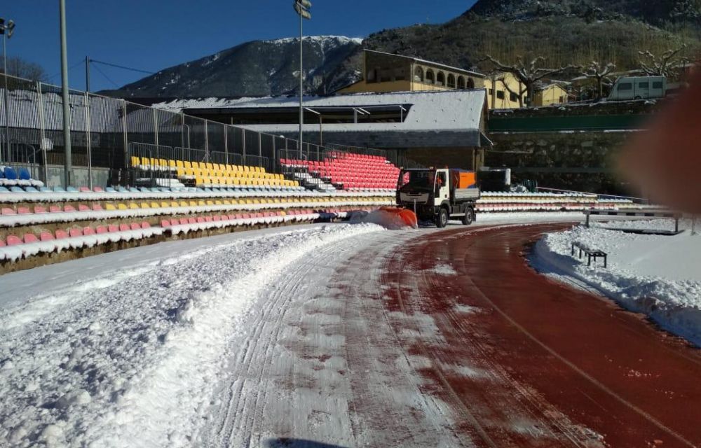 Els usuaris de l’Estadi comunal, especialment federats d’atletisme, havien lamentat que els espais exteriors de la infraestructura continuessin impracticables durant bona part d’quest dilluns per culpa de l’elevada presència de neu. Tant la gespa com la pista sintètica, el tartan, que s’usa per córrer han estat coberts de neu bona part del matí.