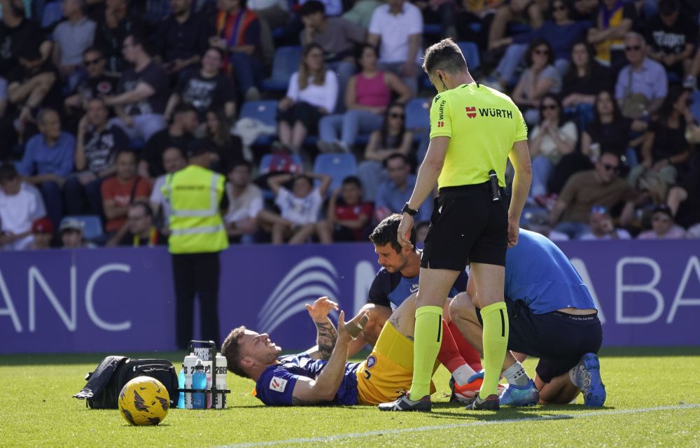 El central va ser titular contra l’equip basc, però passada la mitja hora del duel va trencar-se. De seguida es va poder comprovar que la lesió no li permetria seguir jugant i que, a més, tenia una certa gravetat. Va ser substituït per Marsá. Ara, les proves mèdiques que se li han efectuat han constatat que pateix una dolència relativament important.