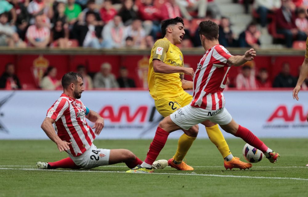 L’Sporting, també necessitat de punts per esgarrapar alguna posició al play-off d’ascens, ha arrencat amb una marxa més. Otero i Mario González han donat un primer avís a la defensa tricolor, que ja veia com els errors propis posaven les coses molt complicades des de l’inici. Als deu minuts, en un córner on l’Andorra ha caigut de ple en l’estratègia asturiana, Cote ha xutat prop de la frontal de l’àrea per anotar un bon gol pel primer pal de Ratti.