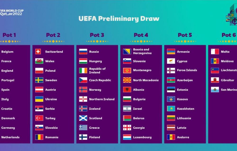 En concret cinc: Malta, Moldàvia, Liechtenstein, Gibraltar i San Marino. Aquests són els equips que formen el pot 6 del sorteig. Andorra estarà al 5, amb Armènia, Xipre, les Illes Fèroe, Azerbaidjan, Estònia, Kosovo, Kazakhstan, Lituània i Letònia.
