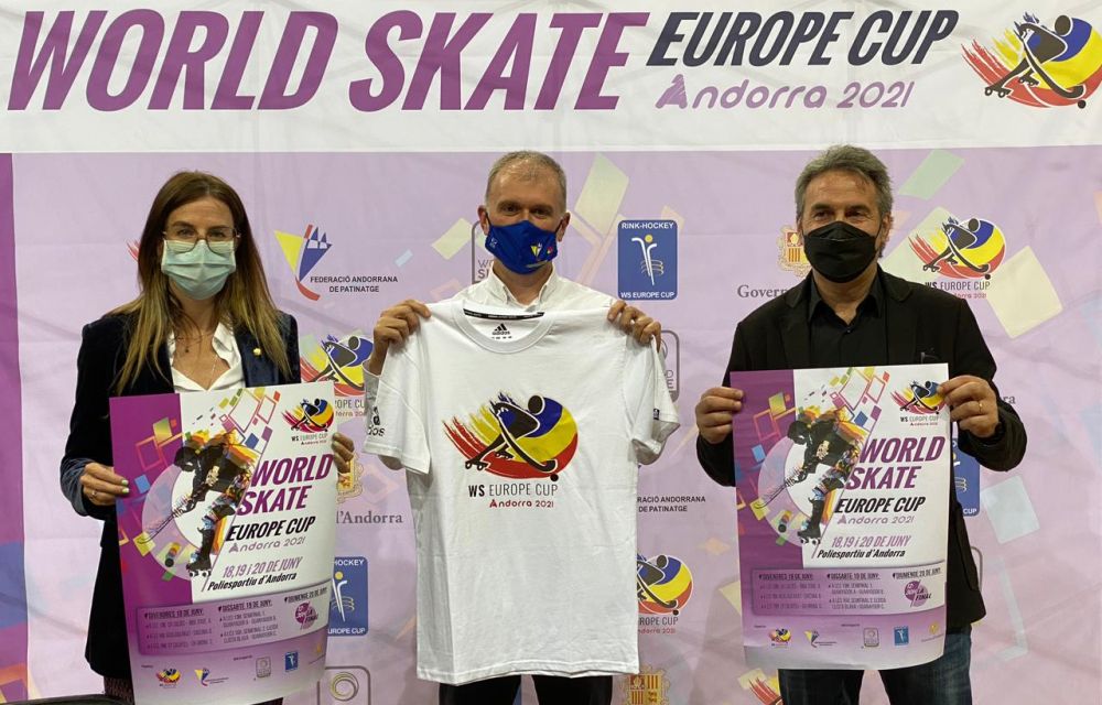 Amb la presència de la ministra de Cultura i Esports, Sílvia Riva; del president de la Federació Andorrana de Patinatge, Víctor Buen; i l’aparició telemàtica d’Agostinho Silva, president de la World Skate Rink Hockey, s’ha presentat aquesta tarda a la pista central del poliesportiu de Govern, la World Skate Europe Cup Andorra 2021. A l’acte de presentació també s’ha aprofitat per mostrar el cartell de la competició que en breu circularà per tot el Principat.