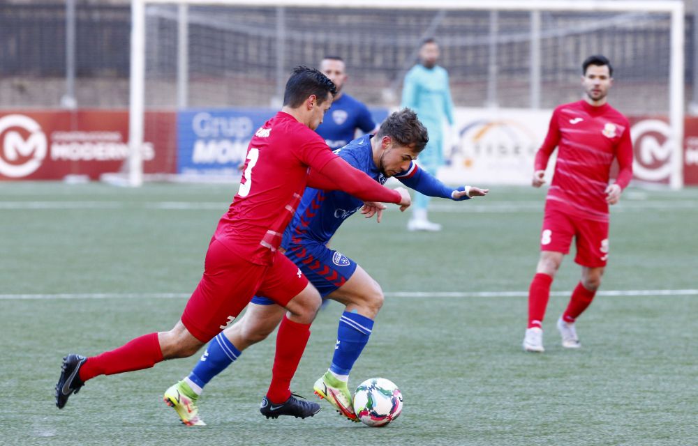 El primer gol d’un partit on cap dels dos equips coneixia la derrota ha arribat de la mà d’Alex Ruiz, estrenant el marcador de l’encontre que podia acabar de qualsevol manera. Malgrat això, la felicitat dels colomencs ha durat poc, i uns minuts després el líder empatava gràcies a Cistero, de penal al 24.