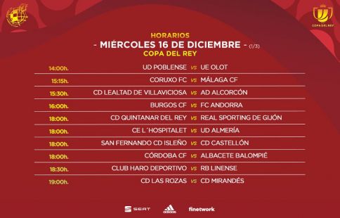 La Federació Espanyola de Futbol ha fet oficials els horaris de la primera eliminatòria de la competició del KO que, com era d’esperar, es distribuiran entre tres dies: del dimarts 15 al dijous 17 de desembre. Entre ells, hi ha el partit que ha de disputar l’Andorra al Plantío, davant el Burgos. El duel ha estat fixat pel dimecres 16 a partir de les quatre de la tarda.