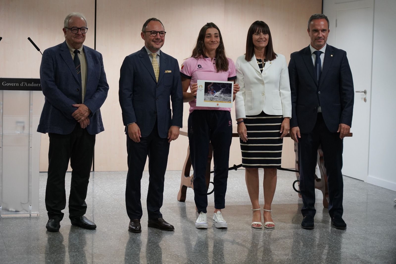 Espot, el cap de Govern, ha parlat del “pastís encomiable” que ha aconseguit coronar aquest agost a París Jaume Martí. I ha reconegut i agraït “la vocació de servei públic i dedicació a favor de l’esport andorrà” del president del COA. A partir d’aquí, ha lloat la tasca de tots els participants als Jocs parisencs, que han contribuït a donar “una bona imatge, a prestigiar el nostre país fora de les nostres fronteres”. El mandatari governamental ha celebrat el paper de Carabaña i Doria, que “ens vau fer somniar amb les medalles. De fet, tu Mònica segur que hi vas somniar”, ha dit Espot mentre expressivament la palista assentia des del lloc que ocupava en aquell moment a la sala de la planta baixa de l’edifici administratiu de Prat de la Creu.