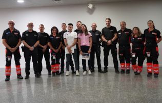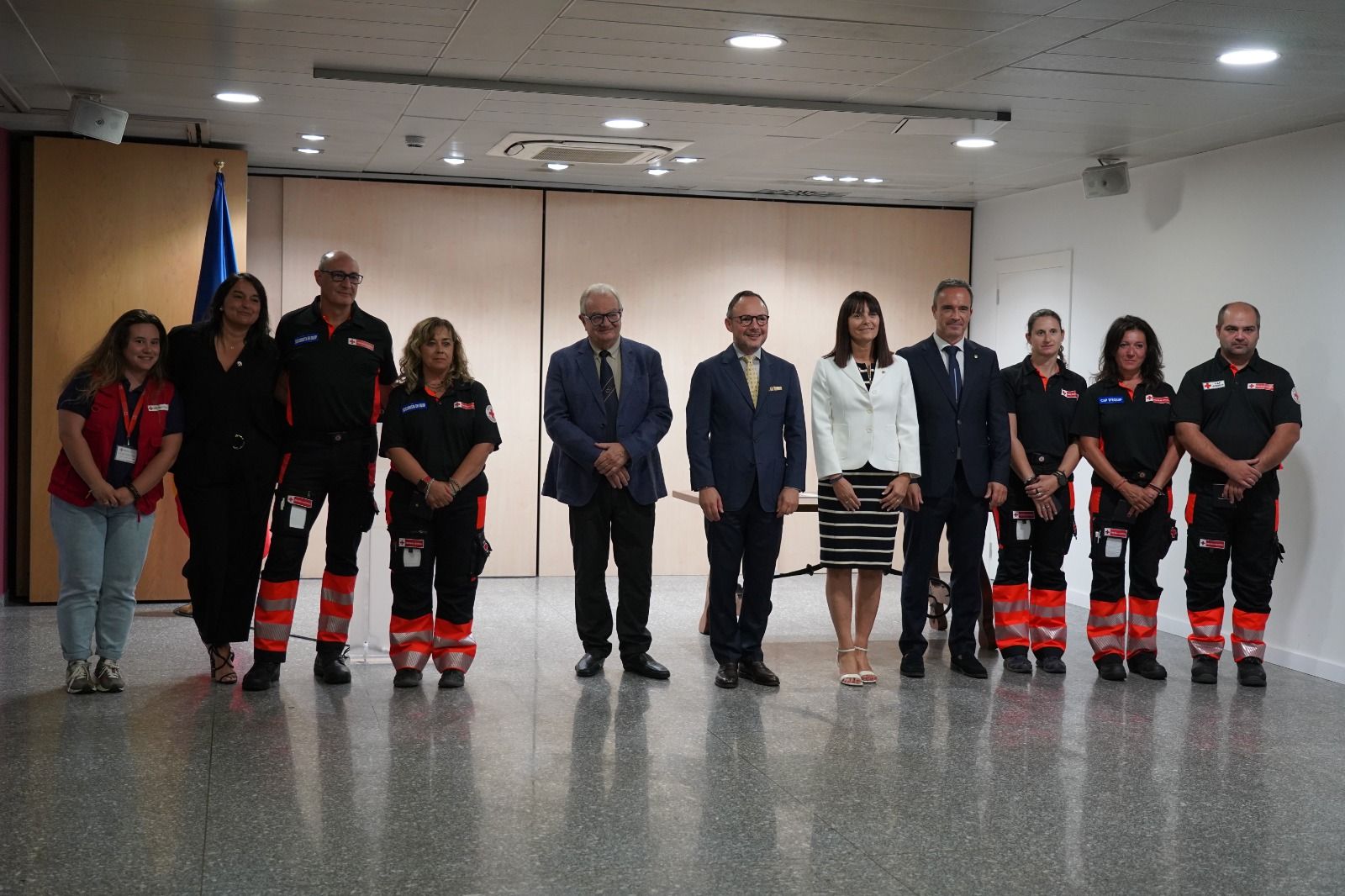 Les autoritats polítiques i del COA amb els voluntaris de la Creu Roja que van ser a París.