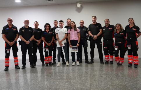 Autoritats polítiques i responsables de la policia amb tres dels funcionaris TEDAX que van ser a París.