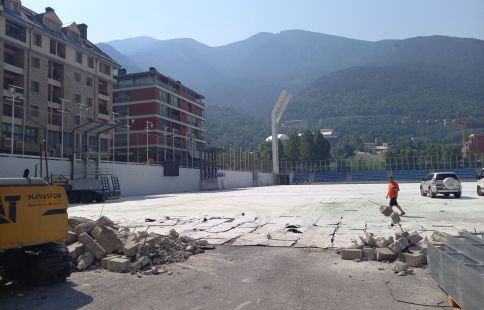 Les obres es van iniciar el mateix divendres, l’endemà del darrer duel disputat al camp. I cal córrer. L’estadi ha d’estar en condicions pel partit de la jornada 4 de lliga en el qual l’FC Andorra rebrà el Granada. Serà el primer cap de setmana de setembre. Per això, ja s’ha treballat sense descans al llarg del cap de setmana.