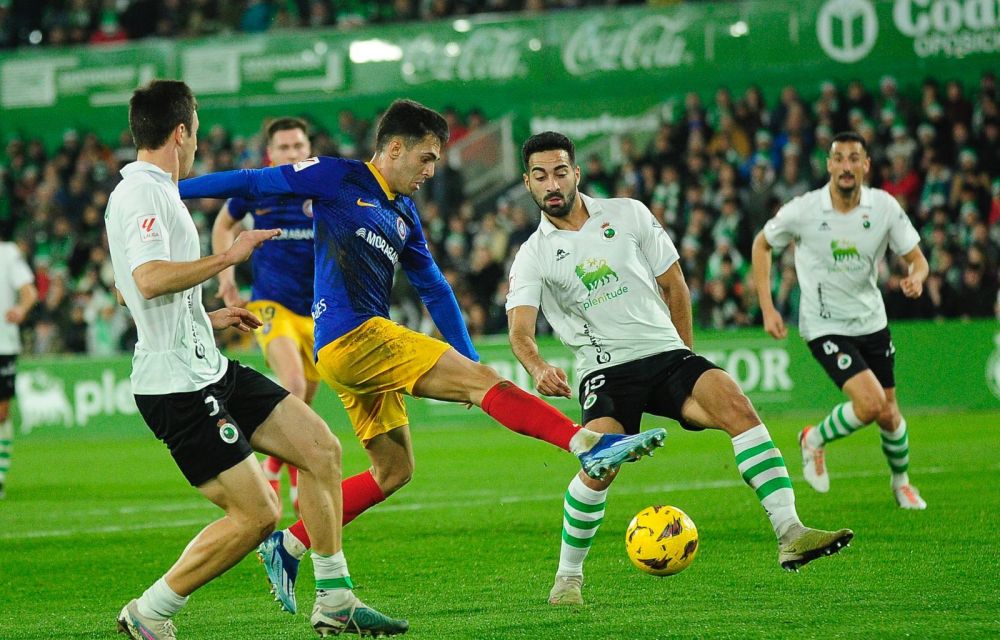 Ho ha fet al 10’, en un mà a mà amb Matilla que havia rebut l’excel·lent canvi de joc de Peque. I, també, al 12’, en una doble ocasió. Primer ha estat Ekain qui rebent des de la dreta ha vist com l’argentí refusava el seu xut i, després, Ekain ha estat més ràpid que Vilanova i ha tornat a rematar. L’agilitat de Ratti ha evitat l’1-0. L’ofensiva càntabra no s’ha aturat aquí. Al 20’, Rubén Alves ha desviat una centrada d’Aldasoro i el porter tricolor, novament, ha hagut d’intervenir.