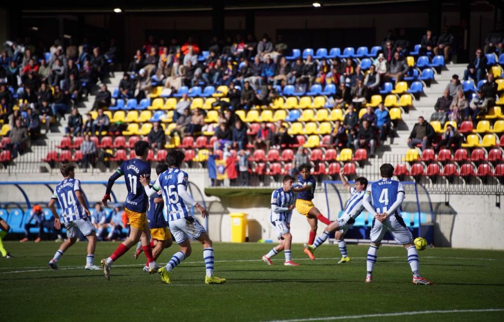 Això ha provocat l’últim canvi a cada costat. Ha entrat un Minsu cada cop amb menys minuts -l’última bala a esgotar-, i també Oleaga i Eceizabarrena pels bascos. Llavors han arribat les presses tricolors amb un joc directe que tampoc ha estat el més efectiu. El que tocava era aprofitar les ocasions clares, no córrer als darrers minuts. I el filial de la Reial, en canvi, ha jugat les seves opcions per aturar el partit i encaminar-se cap a la victòria. De fet, gairebé no han disposat de cap ocasió clara els andorrans a la recta final. Només un xut que ha tret els colors a la graderia de Le Normand ha apropat la pilota a porteria.