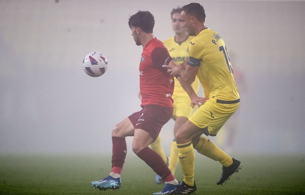 Pilota, sota la boira, novament per l’Andorra. El Vila-real B, pacient, esperava poder recuperar-la i ser, llavors, vertical. Així ha arribat, al 31’, una bona transició en la qual Forés ha cedit per Pascual. La seva rematada ha marxat per sobre del travesser.