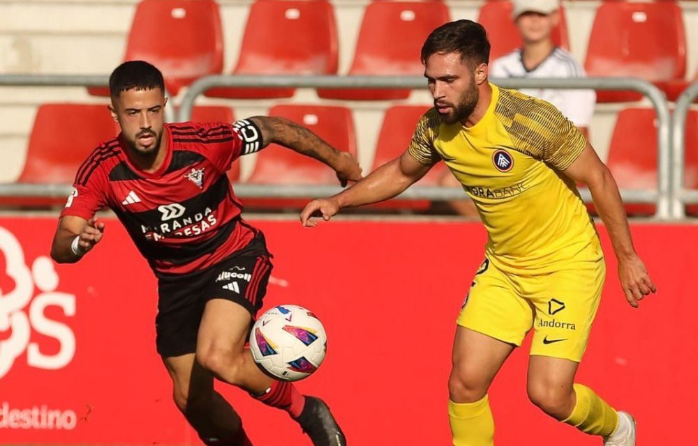 La dinàmica del partit no era pas bona. I feia la sensació que el gol local arribaria tard o d’hora. Perquè l’Andorra, cert, intentava no renunciar al seu estil però ho feia amb massa imprecisions i nervis, sense la continuïtat habitual. I d’això el Mirandés, amb les idees clares, se n’ha sabut aprofitar. Al 24’, novament en transició, Gabri s’ha plantat a la frontal i ha fet lluir Ratti. El refús de l’argentí l’ha recollit Carlos Martín, que ha acabat xutant massa creuat. Segons després, en una contra, la rèplica l’ha donat sense punteria Manu Martín, amb un xut ras i en rosca que ha marxat lleugerament desviat.