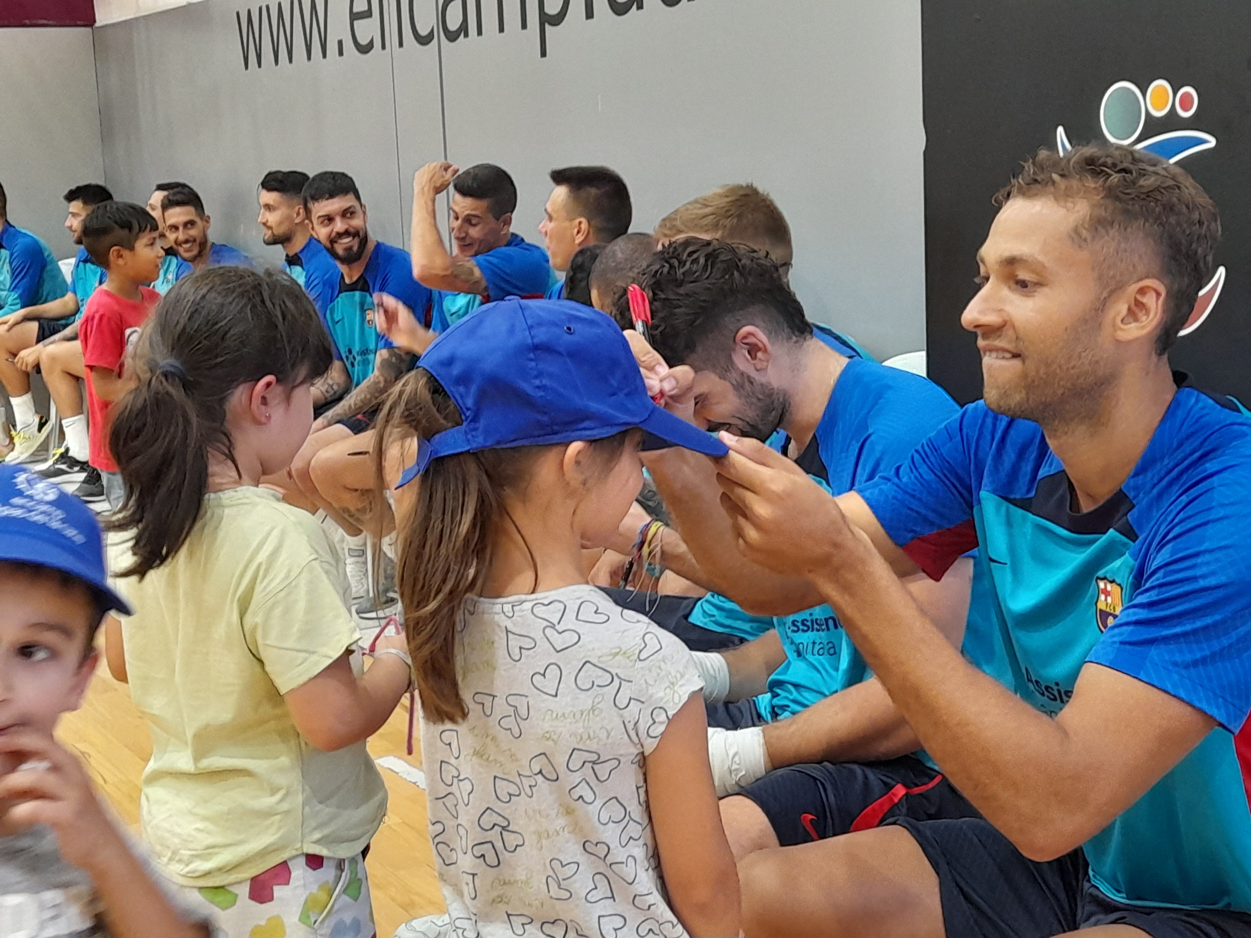 Els jugadors del Barça firmen autògrafs als més petits.