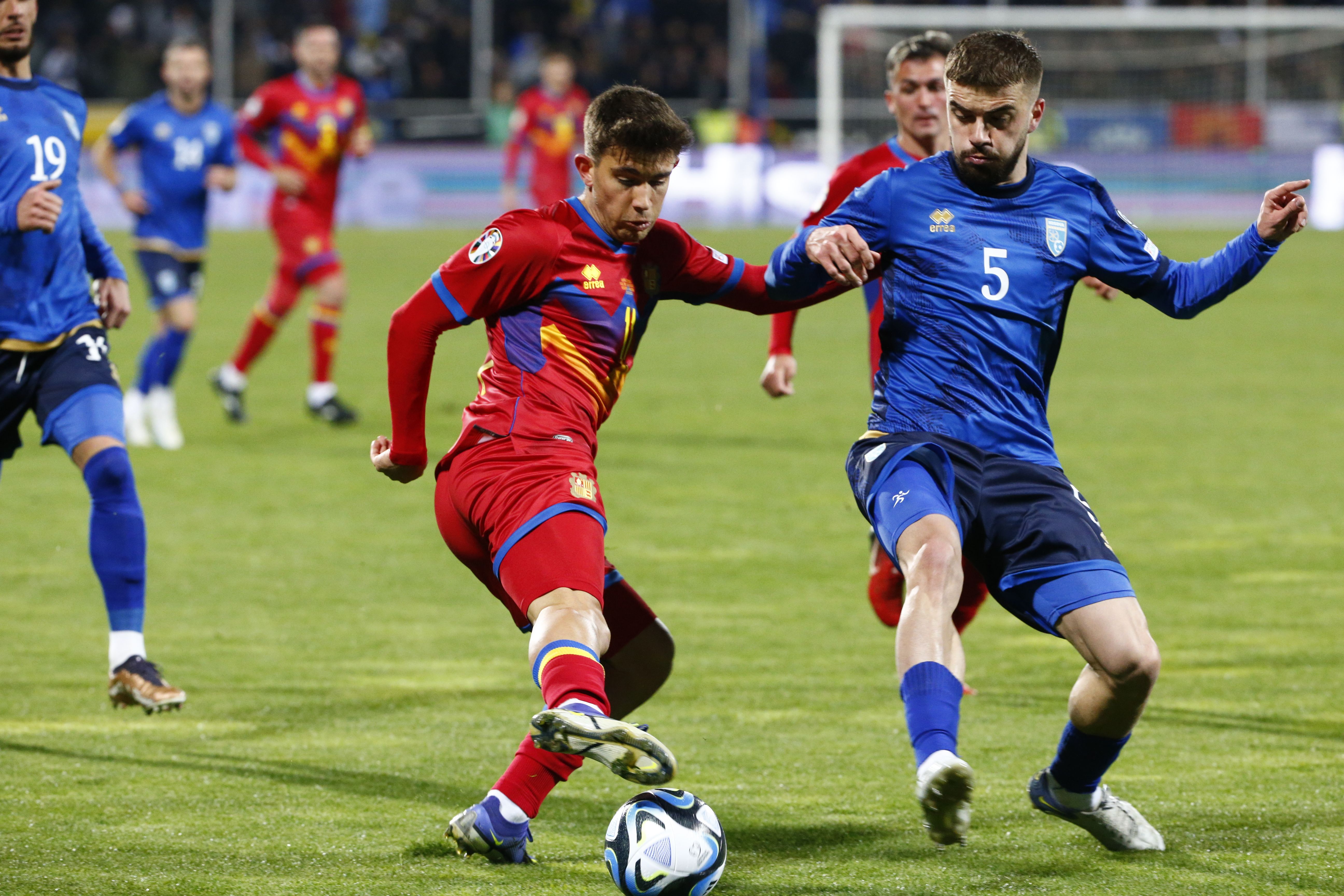 Tal com era de preveure, Kosovo ha portat la iniciativa del duel des del primer minut davant una Andorra ben situada al terreny de joc. Com s’esperava, també, el principal maldecap defensiu dels tricolors ha estat controlar Muriqi. El davanter del Mallorca ha tingut les principals ocasions locals al primer temps.