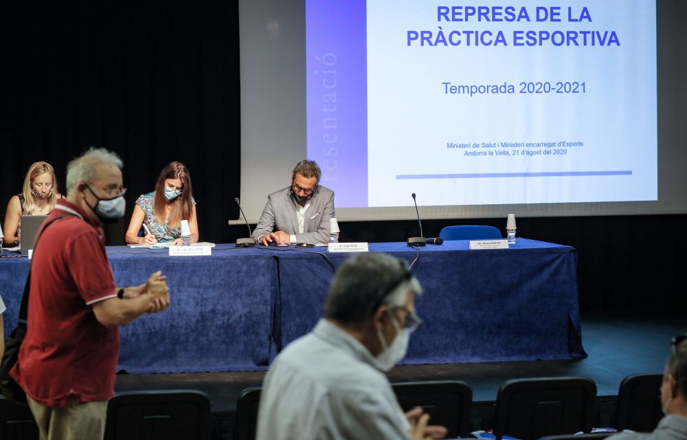 Riva ha explicat als diferents representants aplegats en la reunió que l'activitat esportiva estarà marcada per la situació epidemiològica i que caldrà fer un seguiment regular aplicant en cada moment les mesures preventives escaients. La ministra ha afirmat que els protocols que s'hauran d'aplicar han de facilitar al màxim la traçabilitat davant possibles focus d'infecció.