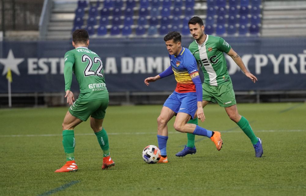 El tram final del segon temps ha estat clarament tricolors. Més domini, més control i, també, ocasions. Carlos, amb un mà a mà amb Juanma que el porter ha sabut tapar bé, i Bover, amb un xut desviat, han estat molt a prop d’anotar el segon.