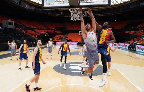 Els lleonesos estaven bloquejats fins que dos llançaments exteriors de Benite han trencat la mala ratxa i han donat pas a un període d’intercanvi de cistelles on els tricolors han sabut mantenir a ratlla el seu rival, sempre amb diferències còmodes. Fins que a manca d’un minut per al descans, dos triples consecutius de Senglin i Torodorovic han eixamplat la diferència fins als setze punts (35-51). El San Pablo encara ha tingut sort que, sobre la botzina, McFadden ha anotat des de més enllà del mig del camp la cistella de la fase final, que els ha permès marxar a vestuaris només tretze per sota (40-53).
