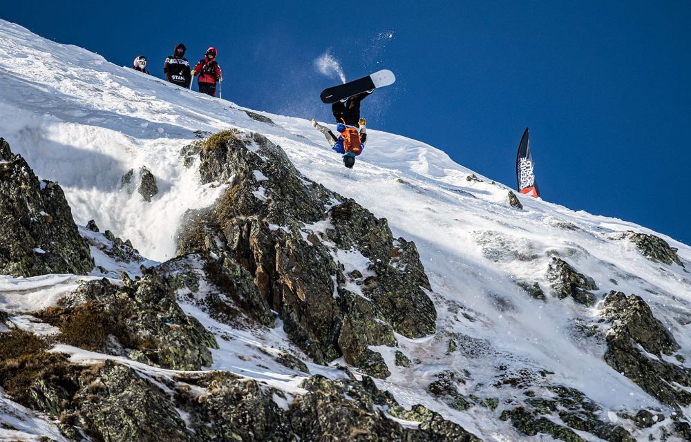 La victòria entre els homes, també en surf de neu, ha estat pel britànic Cody Bramwell. Ha fonamentat la victòria en la seva primera competició FWT en un ‘backflip’ gegant en terreny seriosament exposat, abans de volar una roca enorme a la part inferior amb un ‘ollie' anticipat, marcant de doble ‘shifty mid-air’. Dos americans han acabat segon i tercer. Blake Moller ha pres la sortida a tot gas i ha pujat per primera vegada a l'pòdium gràcies a la creativitat de la seva línia, en què ha planxa un ‘backflip’ enorme, seguit d'un sorprenent triple aeri molt tècnic. I Nils Mindnich amb la seva característica fluïdesa, ha executat una línia amb 360º amb molt aire per deixar clar que va lluitarà per un segon títol mundial consecutiu.