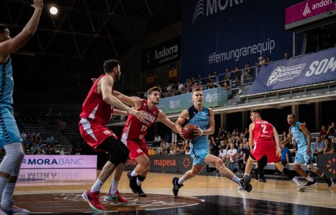MORABANC ANDORRA (84): Somogyi 6, Tyson Pérez 11, Rubio 17, Okoye 10, Maric 1 -cinc inicial-, Goudelock 19, Andric, Llovet 3, Ganal 12 i Oriola 5. 26 de 40 tirs lliures; 20 de 41 tirs de dos; 6 de 25 triples. 47 rebots, 10 ofensius. 24 faltes personals.
