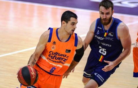 Sense les seves dues torres, Musli i Diagne, Ibon Navarro ha plantejat una defensa agressiva buscant el dos contra un. El poc encert dels andorrans en els tirs de tres (0 de 6) contrastaven amb les pèrdues de pilota dels valencians (10 en 12 minuts) que manaven en el marcador. Fins que han començat a entrar els triples amb Hannah i Jelinek i el MoraBanc ha posat l'empat a 25. Abalde amb 10 punts i algunes errades en atac permetien que el València marxés al descans amb un 42-50 i tenint la major part del temps al seu jugador franquícia Dubljevic assegut a la banqueta.