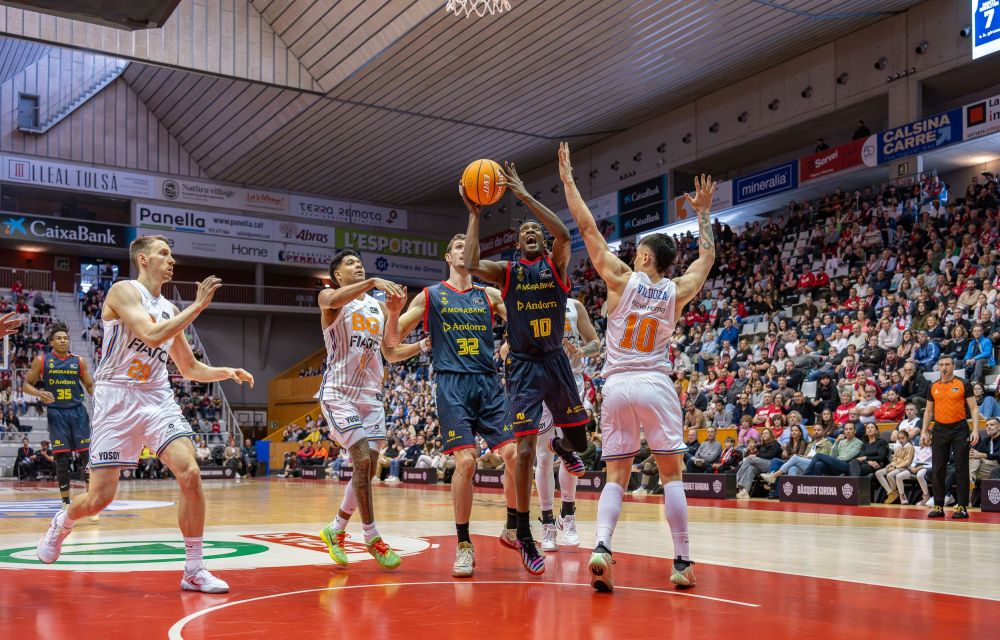 Sense Shannon Evans a la convocatòria, el MoraBanc ha tornat a afrontar el duel a Girona amb problemes en la direcció de joc. Aquest cop ha estat Rafa Luz qui ha sortit d’inici en uns primers minuts sense gaire anotació, amb errades constants a dues bandes. Això ho ha solucionat Pep Busquets des de la línia de tres i un Sergi Martínez que ha aprofitava els contracops per posar el 8-2. Amb un Andorra estavellat davant la defensa gironina, i acumulant pèrdues que tenien com a protagonista al nouvingut Sir’Jabari Rice, ha costat molt sumar. Només Kuric ha exercit de desatascador amb un triple (12-7) abans que marxés la il·luminació del pavelló.