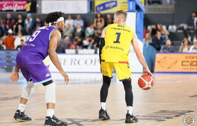 El MoraBanc ha entrat bé al partit, dominant en el marcador en un primer període en el qual, tot s’ha de dir, cap dels dos equips ha estat excessivament encertat de cara a cistella. Tot i això, els de Natxo Lezkano han obert escletxa en els primers minuts, amb un 1-6 i un 3-8 gràcies a l’encert de Tobias Borg, Nacho Llovet i Maric. I després d’una estona de sequera anotadora compartida, quatre tirs lliures anotats per Johnny Dee han permès ampliar la diferència fins als set punts (5-12).