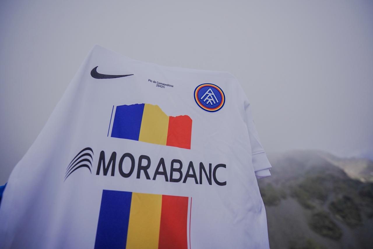 La samarreta suplent, per dir-ho així, principalment blanca, llueix la bandera tricolor amb la cresta del Comapedrosa com a inspiració. L’ascens al cim massanenc va ser un atac de rauxa després que les negociacions per al lloguer de l’estadi de la FAF no anessin tan bé com Piqué segurament esperava. O més malament del que preveia. Davant les traves, una declaració d’amor incondicional, hauria estat una mica la resposta de l’esportista i empresari.